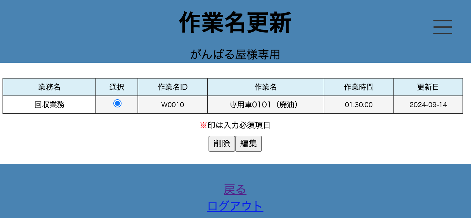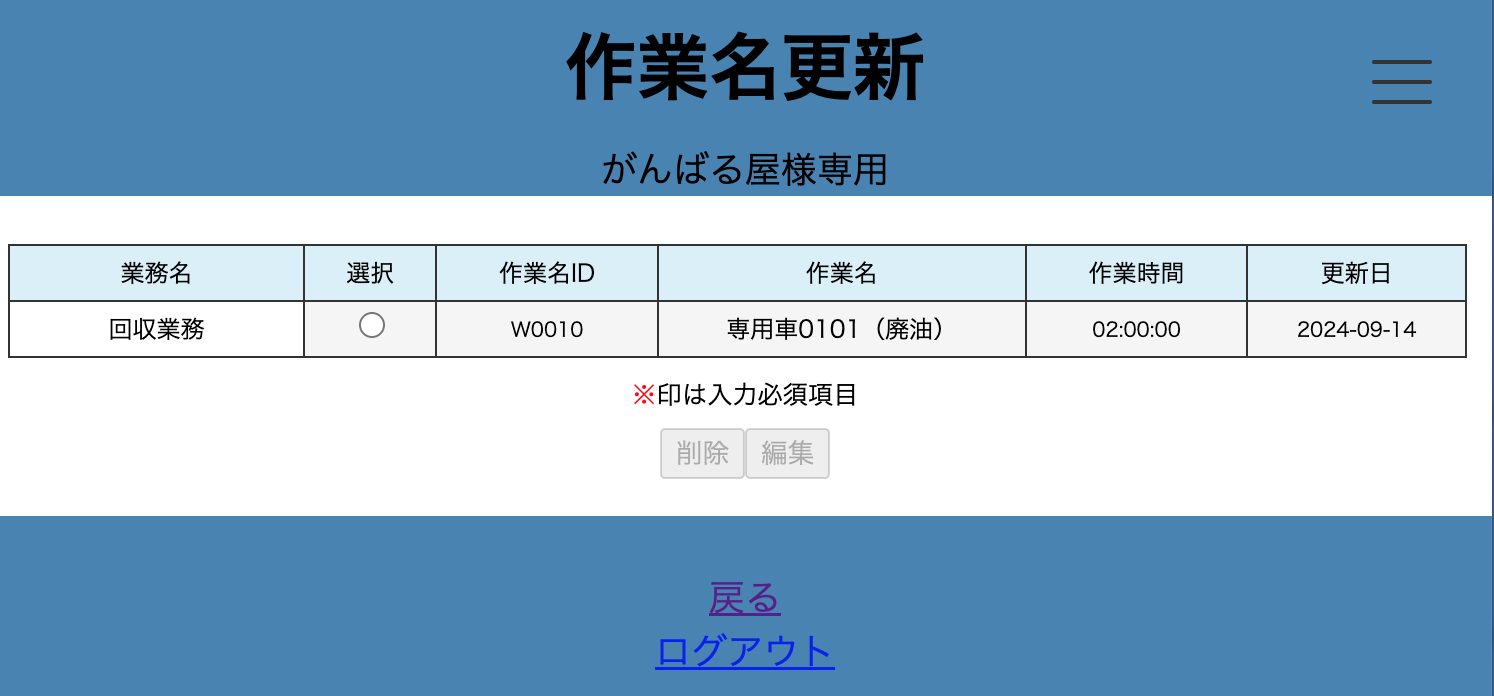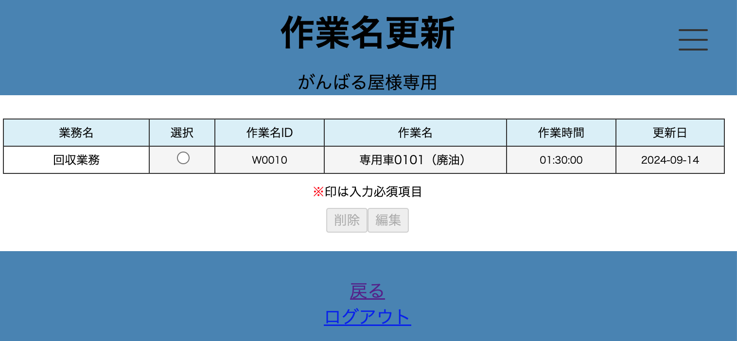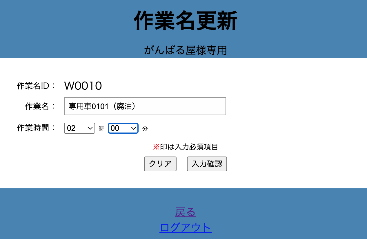 編集可能項目は、「作業名」と「作業時間」のみとなります。