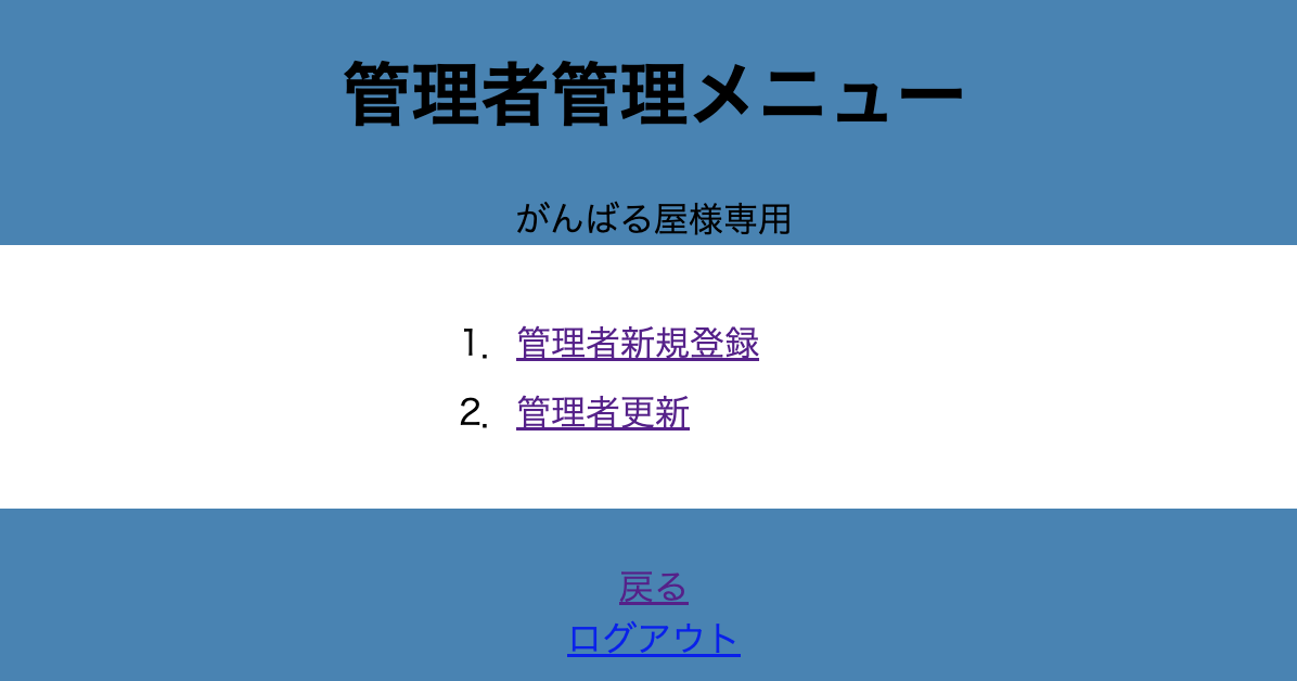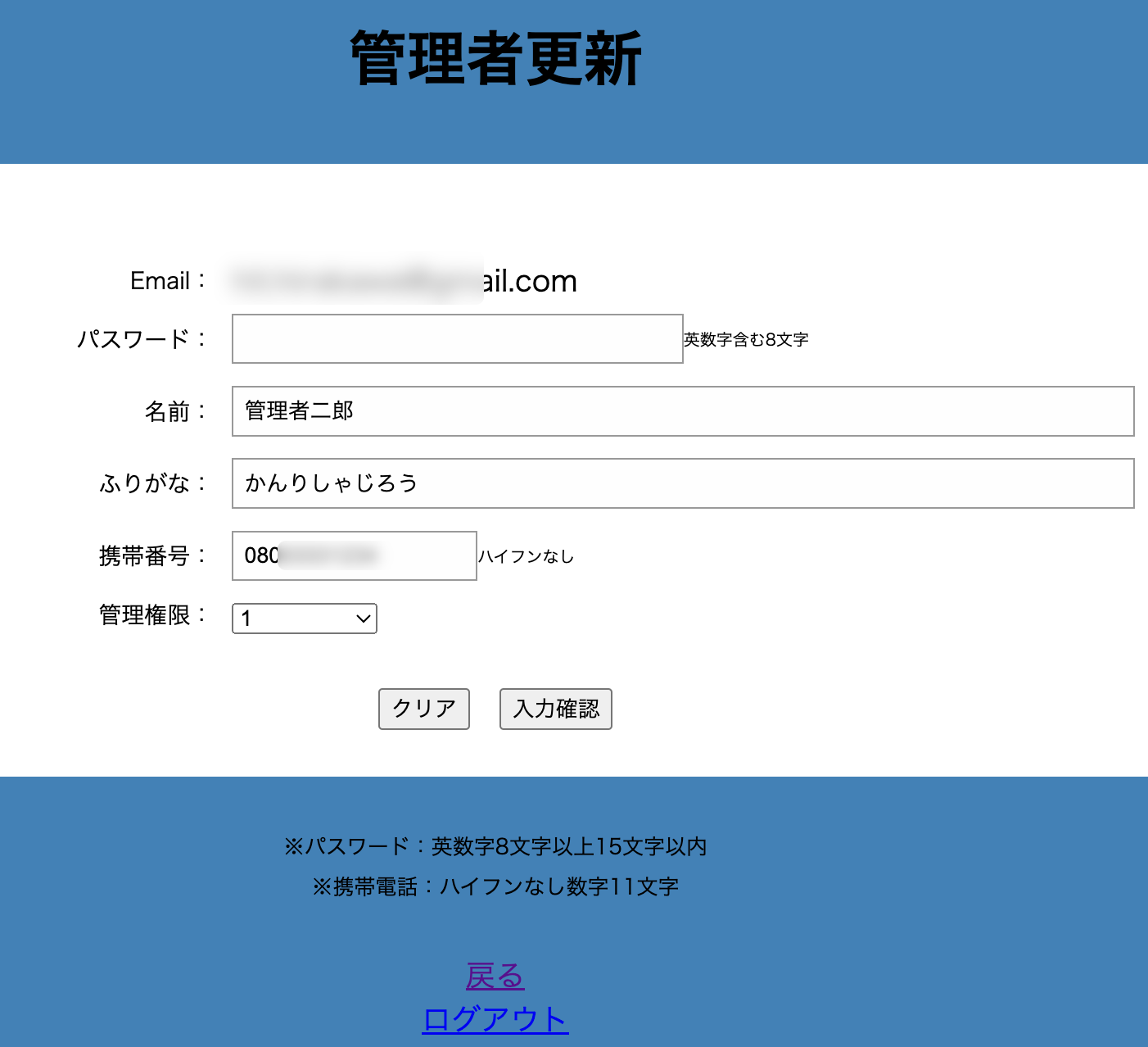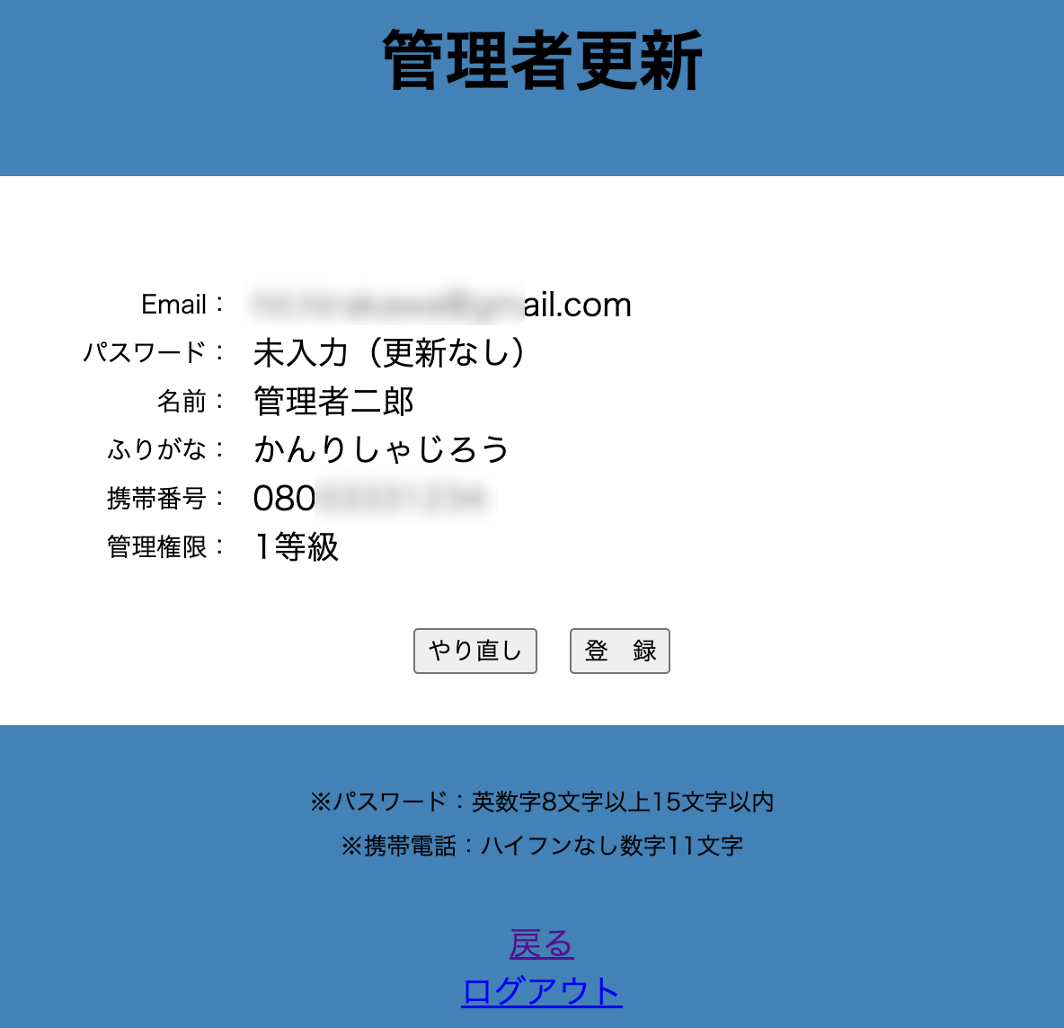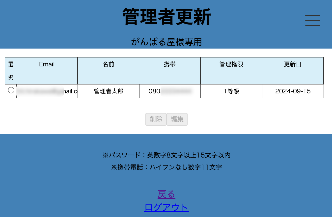 管理者更新登録画面が表示されます。