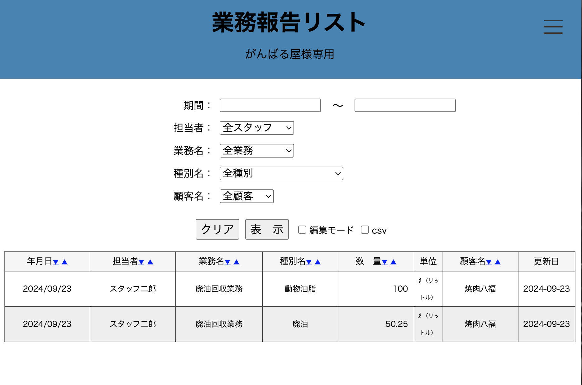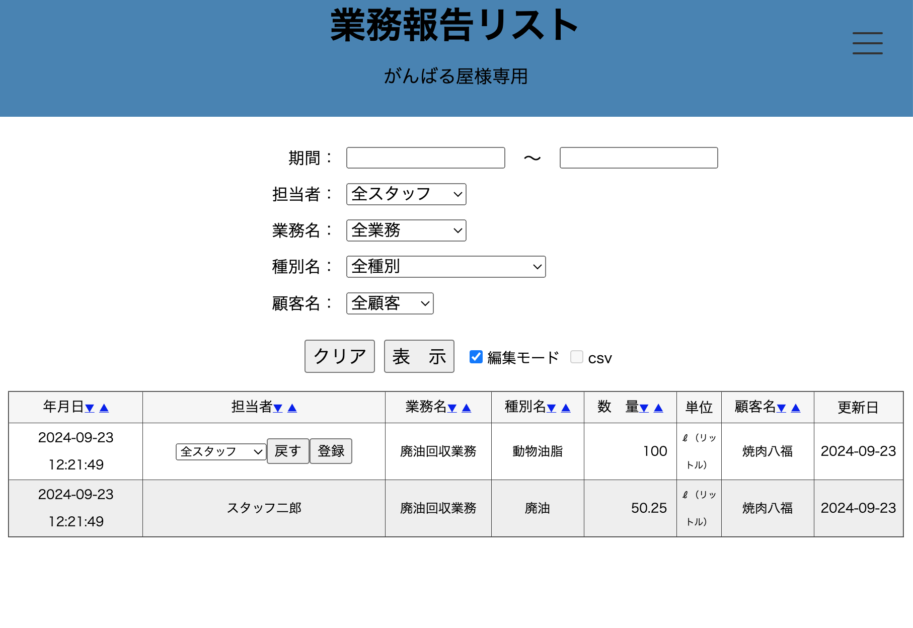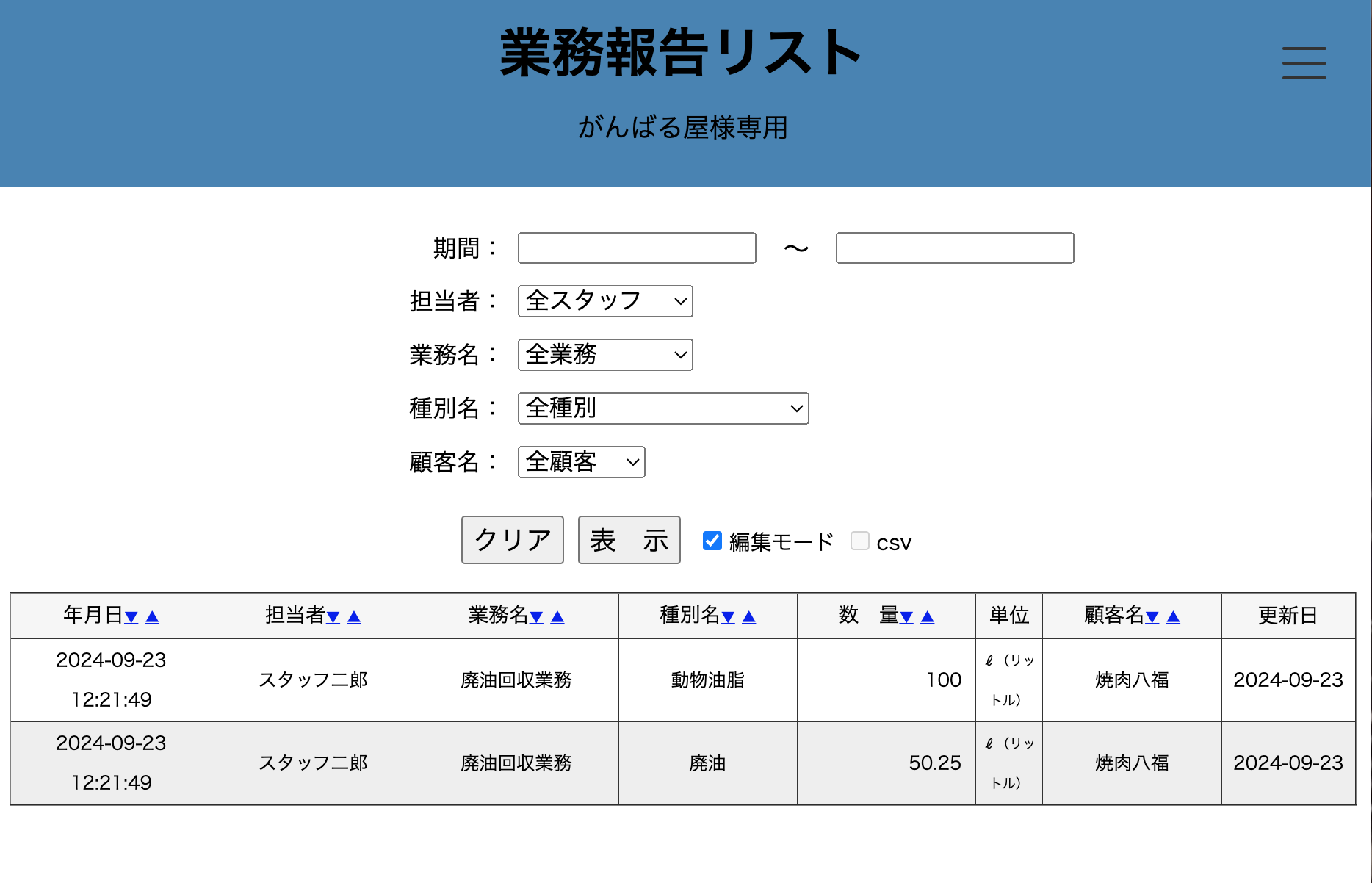 「編集モード」をチェックし「表示」ボタンをクリックすると、データを編集することが出来ます。