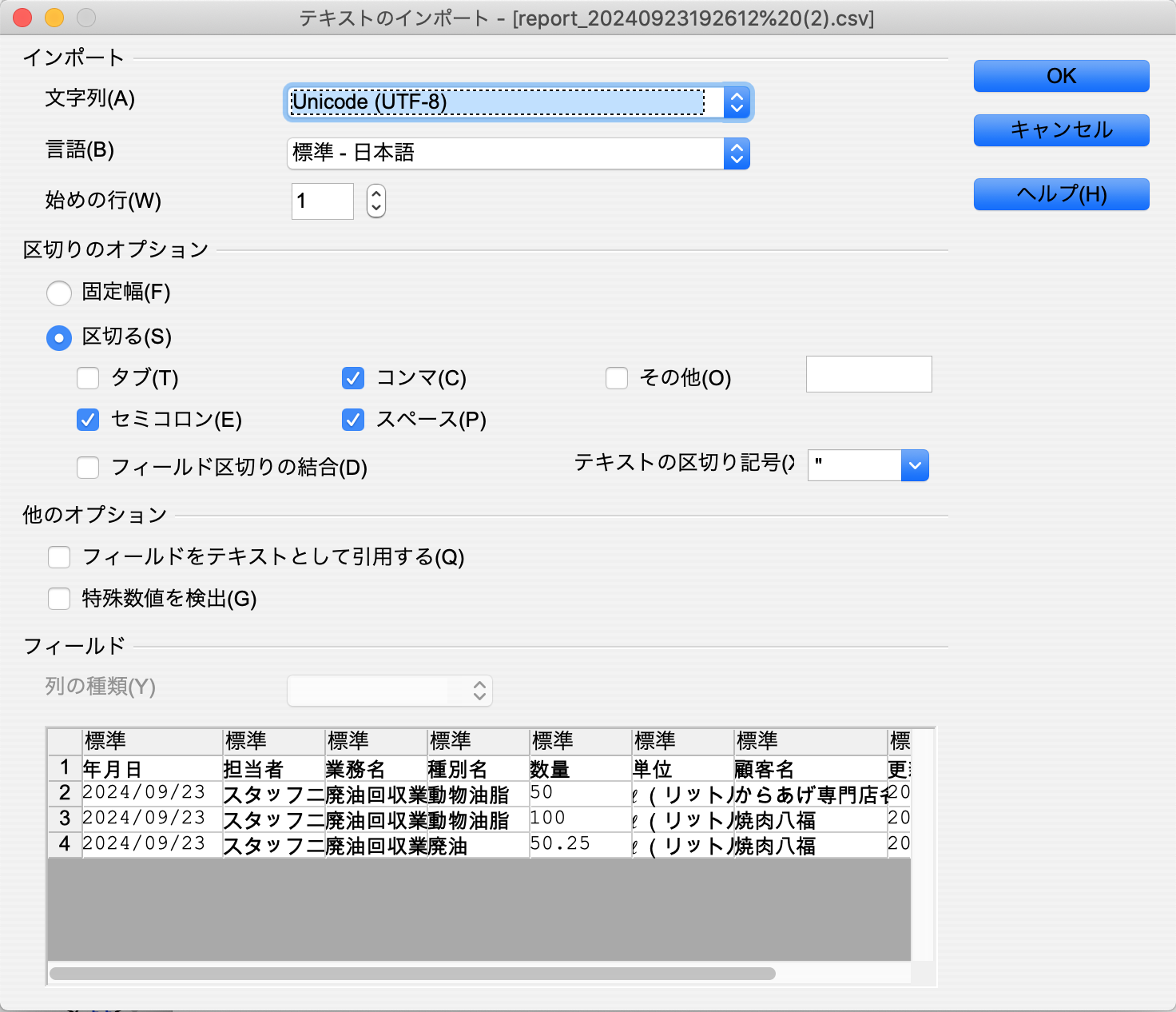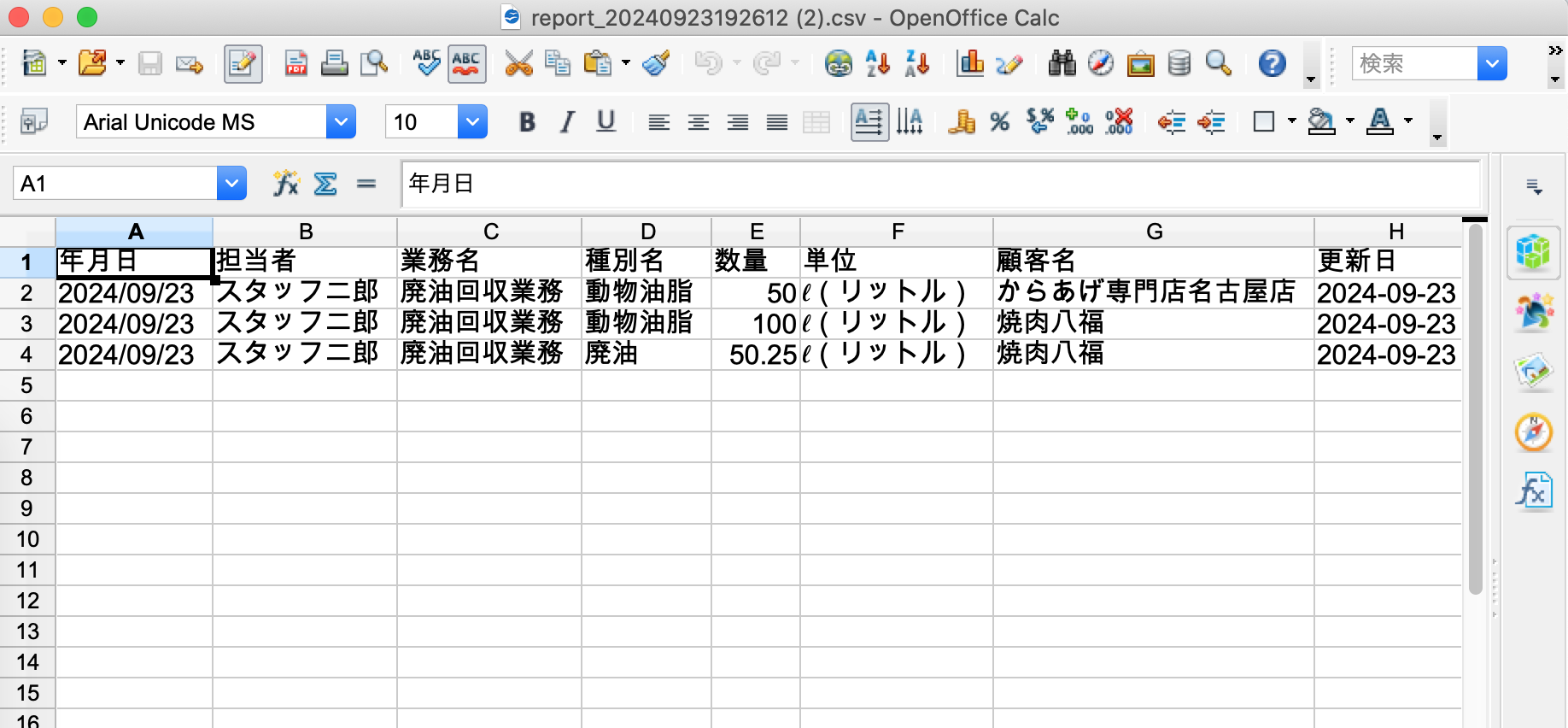 ダウンロードされたcsvファイルは、ご自身のパソコンで関連づけられたソフトウェアで開かれます。